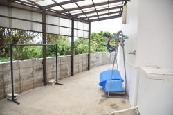 当宿には、ダイビング器材や海水浴グッズをしっかり洗える「専用洗い場」と「屋根付き干場」を完備しています。